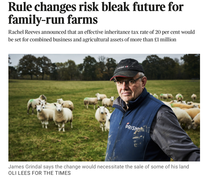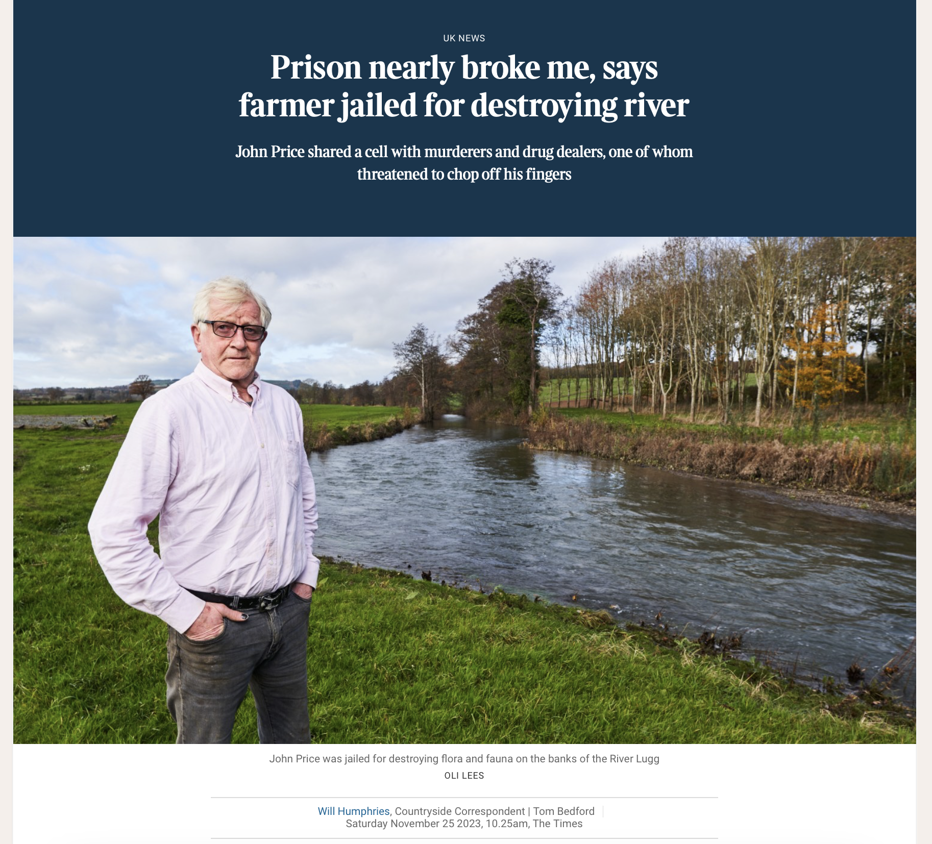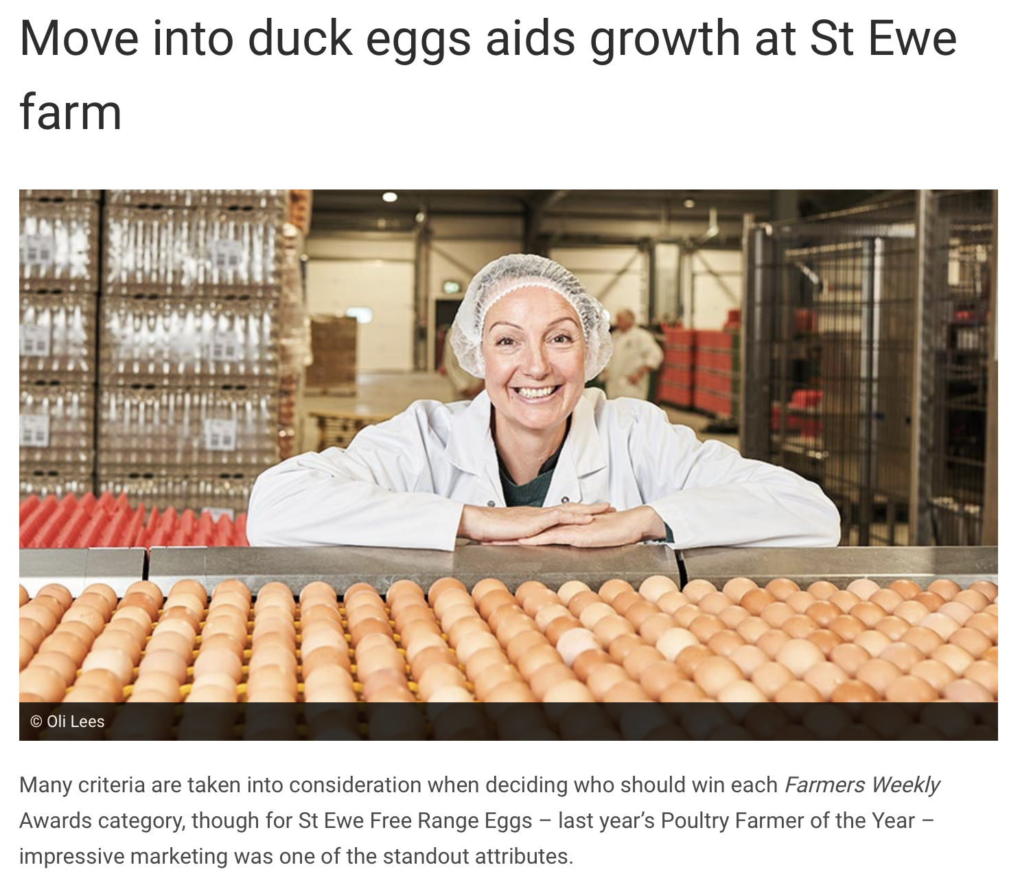 Newspaper article with headline about Warwickshire farm integrating global markets with farm office and CRM AgriCommodities. Contains a photo of a man in outdoor rural landscape, wearing a hat and jacket, crouching near the ground. View fullsize